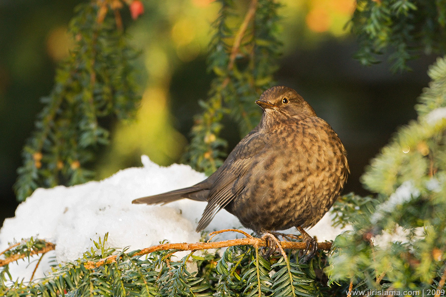 Kos černý, samice / Common Blackbird, female (Turdus merula)Nygardspark, Bergen, Norway / November 2008