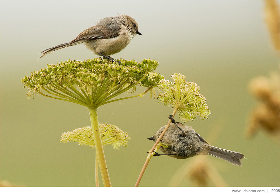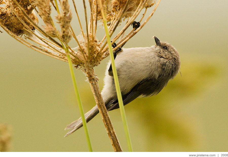 Mlynařík americký, samice / Bushtit, female (Psaltriparus minimus)Blackie Spit, Vancouver, Canada / July 2008