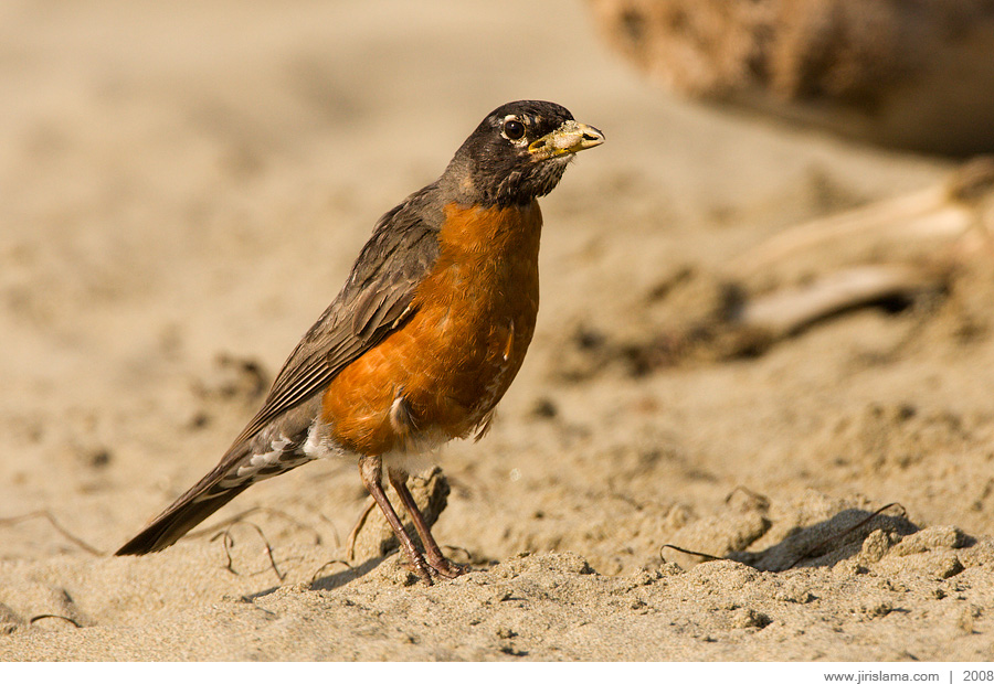 Drozd stěhovavý / American Robin (Turdus migratorius)Whiffen Spit Park, Sooke, Vancouver Island, British Columbia / July 2008