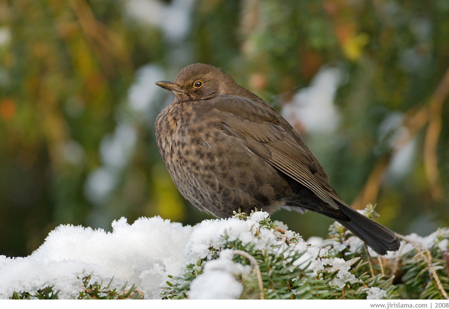 Kos černý, samice / Common Blackbird, female (Turdus merula)Nygardspark, Bergen, Norway / November 2008